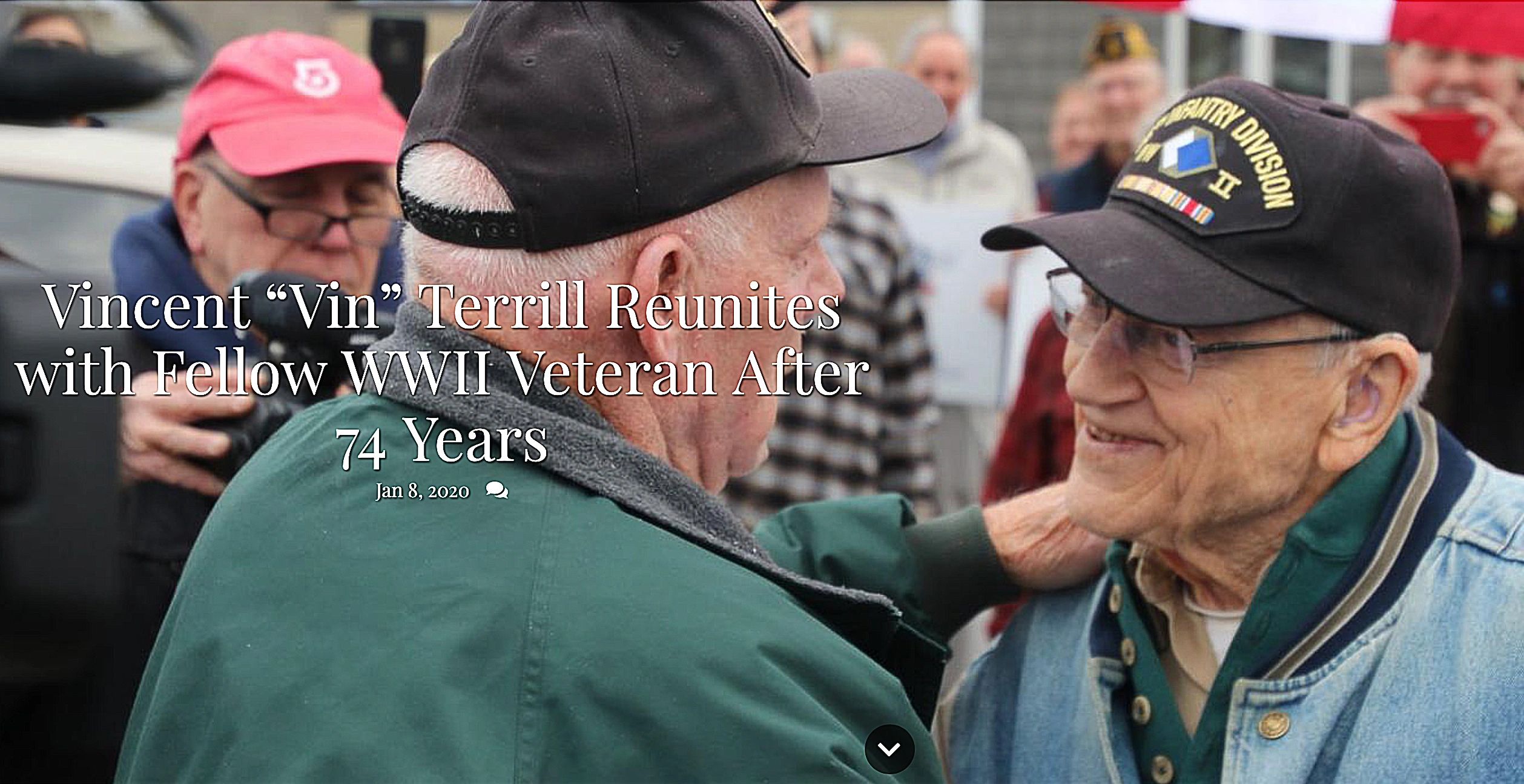Following the broadcast of the first episode, WWII veteran Vincent Terrill, who served with Harold Stryker at the Battle of Okinawa in the Deadeyes 96th Division, contacted us to reach out to his former combat buddy, who he last saw in the Philippines in 1945. Both assumed the other dead.